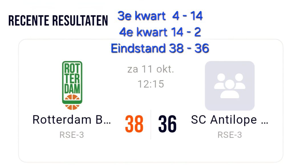 Toen het eindsignaal klonk, stond het 36-38 in Rotterdams voordeel. Een jammerlijke nederlaag, want Antilope had lange tijd het betere spel laten zien. Toch mogen ze trots zijn: het team werkte hard, speelde met lef en liet zien dat de vorm stijgend is.